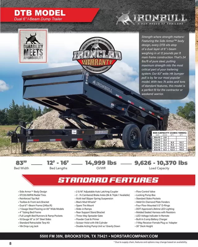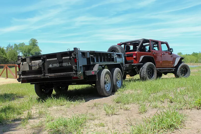 Iron Bull DTG14 Dump Trailer models are built to work. 12″ I-Beam neck and risers, 14,000k – 21,000k of GVWR and 3″ channel crossmembers with 16″ centers. Top tier components come together with the most rugged construction on the market to deliver a dump trailer like no other.
