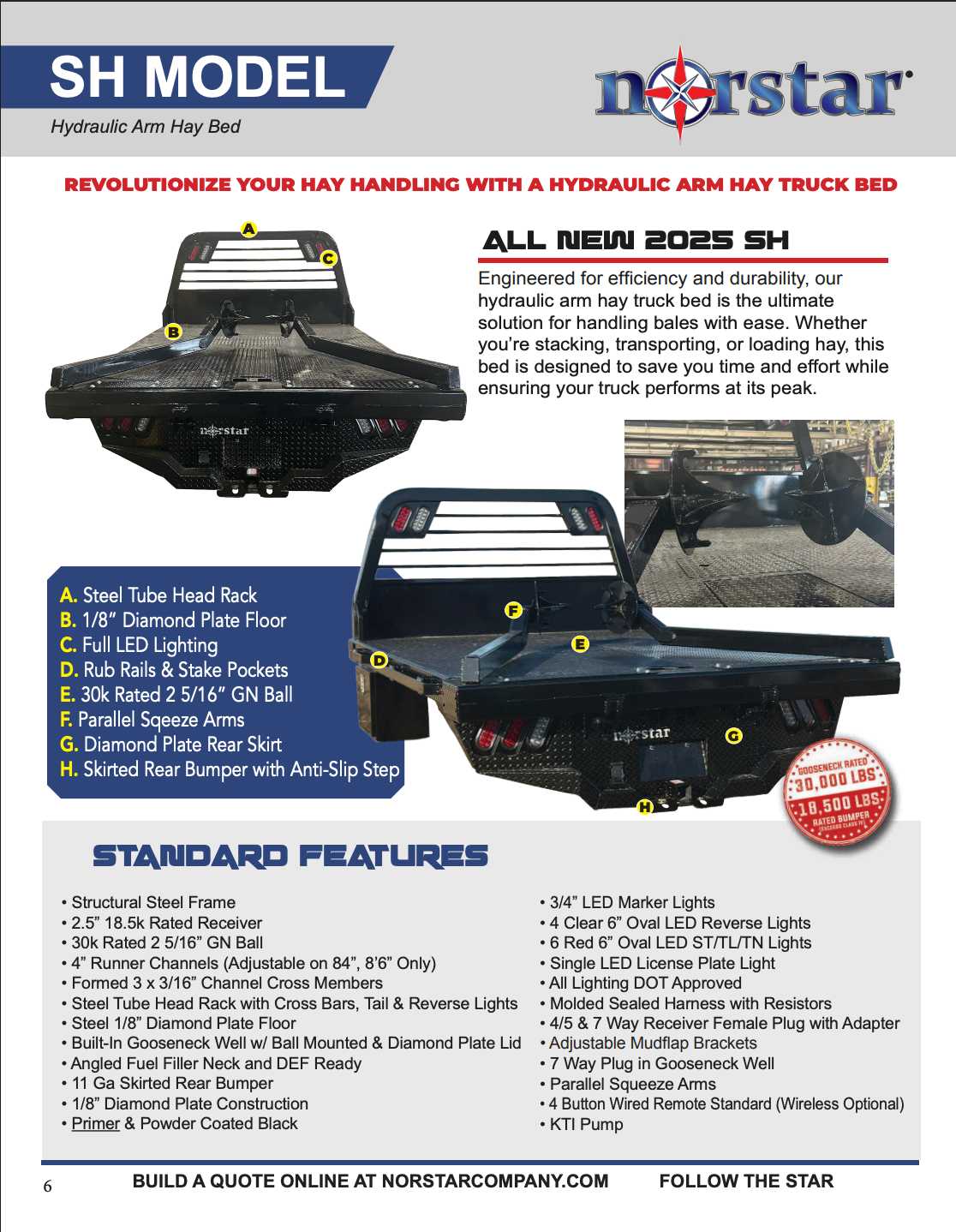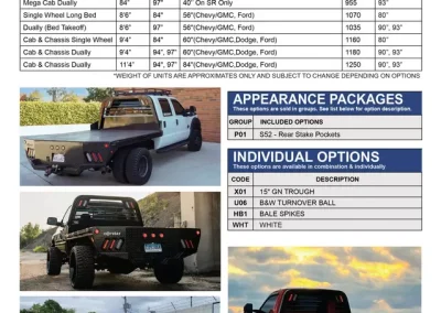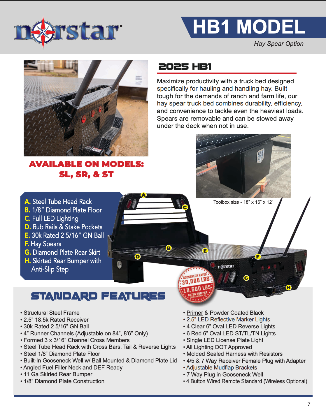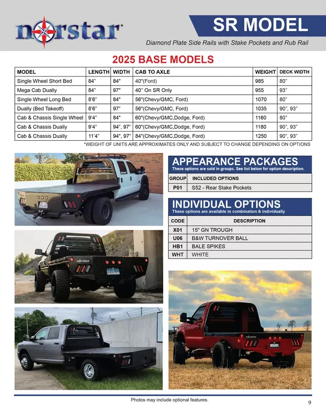 The Norstar SR model offers everything you need in a flatbed configuration. If you want a little more from this basic configuration, look over our options list. We have underbody locking tool boxes for additional storage and gooseneck troughs for a towing upgrade, spare tire mounts for the unexpected and a list of other options to personalize your bed for your home or business needs.