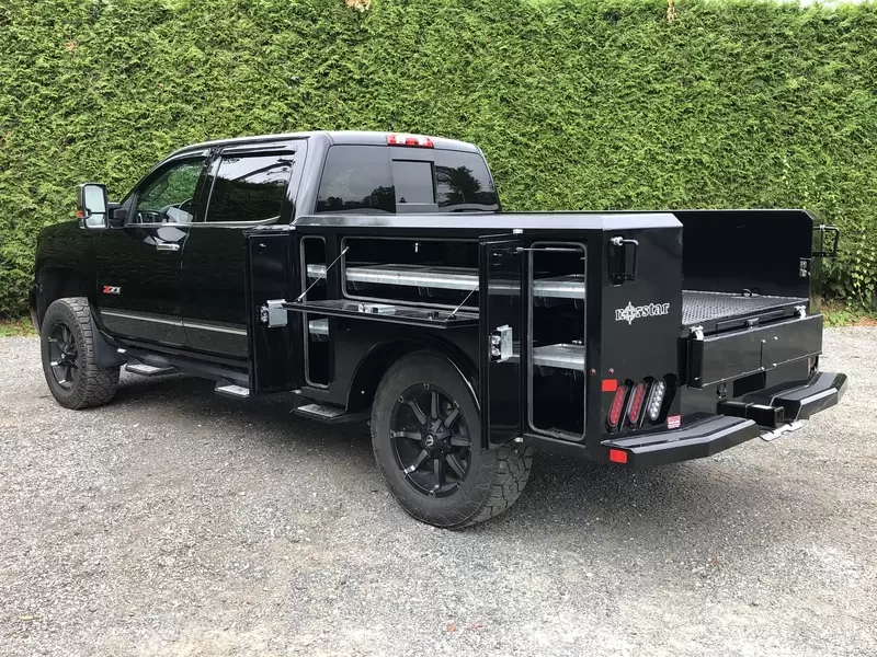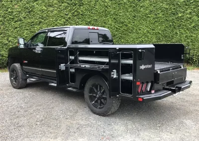 This is one of our best selling models, and for good reason too, it’s perfect for day-to-day tasks. Featuring multiple standard tool boxes, adjustable smooth flare fenders, a rear lockable compartment, 12 Ga steel construction and much more, this bed is built tough.