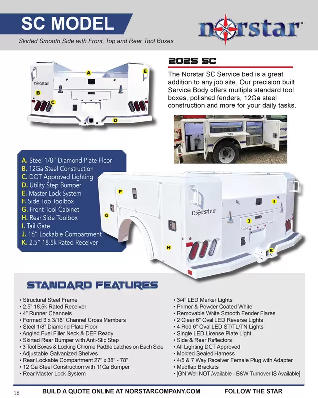 The Norstar SC Service bed is a great addition to any job site. Our precision built Service Body offers multiple standard tool boxes, polished fenders, 12Ga steel construction and more for your daily tasks.