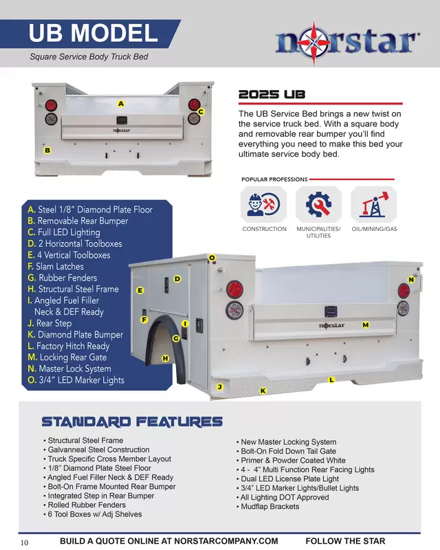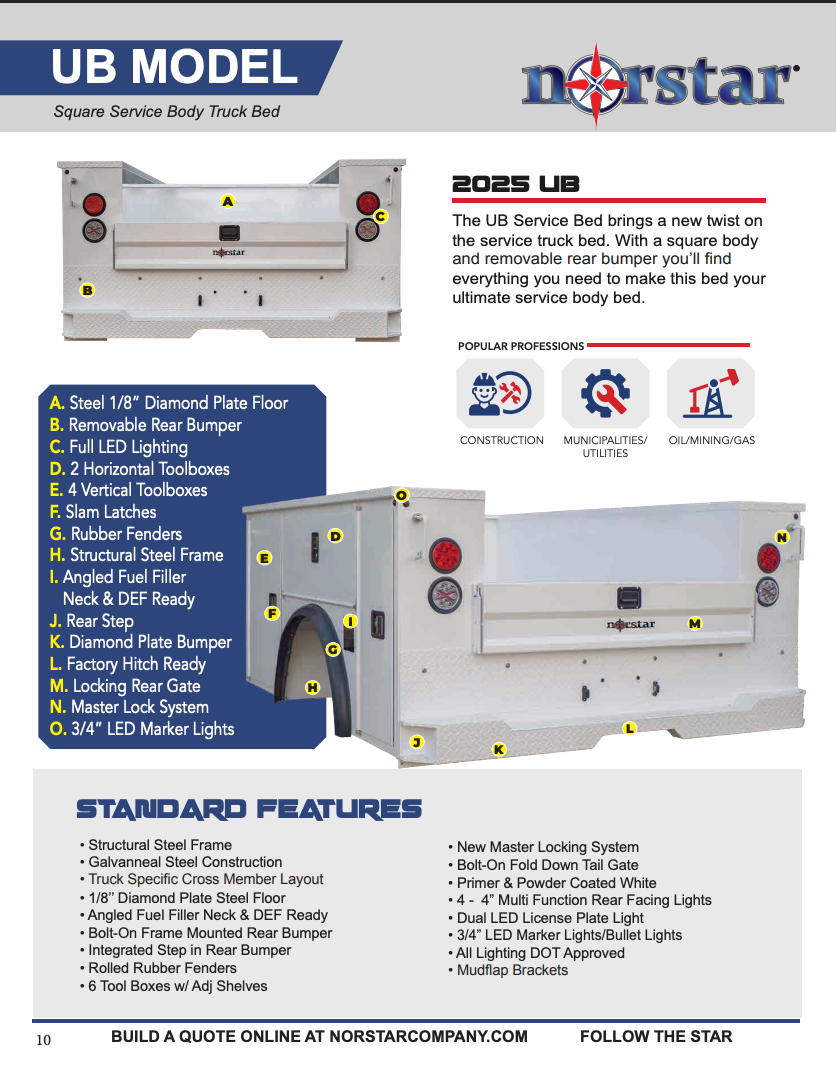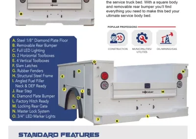 The UB Service Bed brings a new twist on the service truck bed. With a square body and removable rear bumper you’ll find everything you need to make this bed your ultimate service body bed.