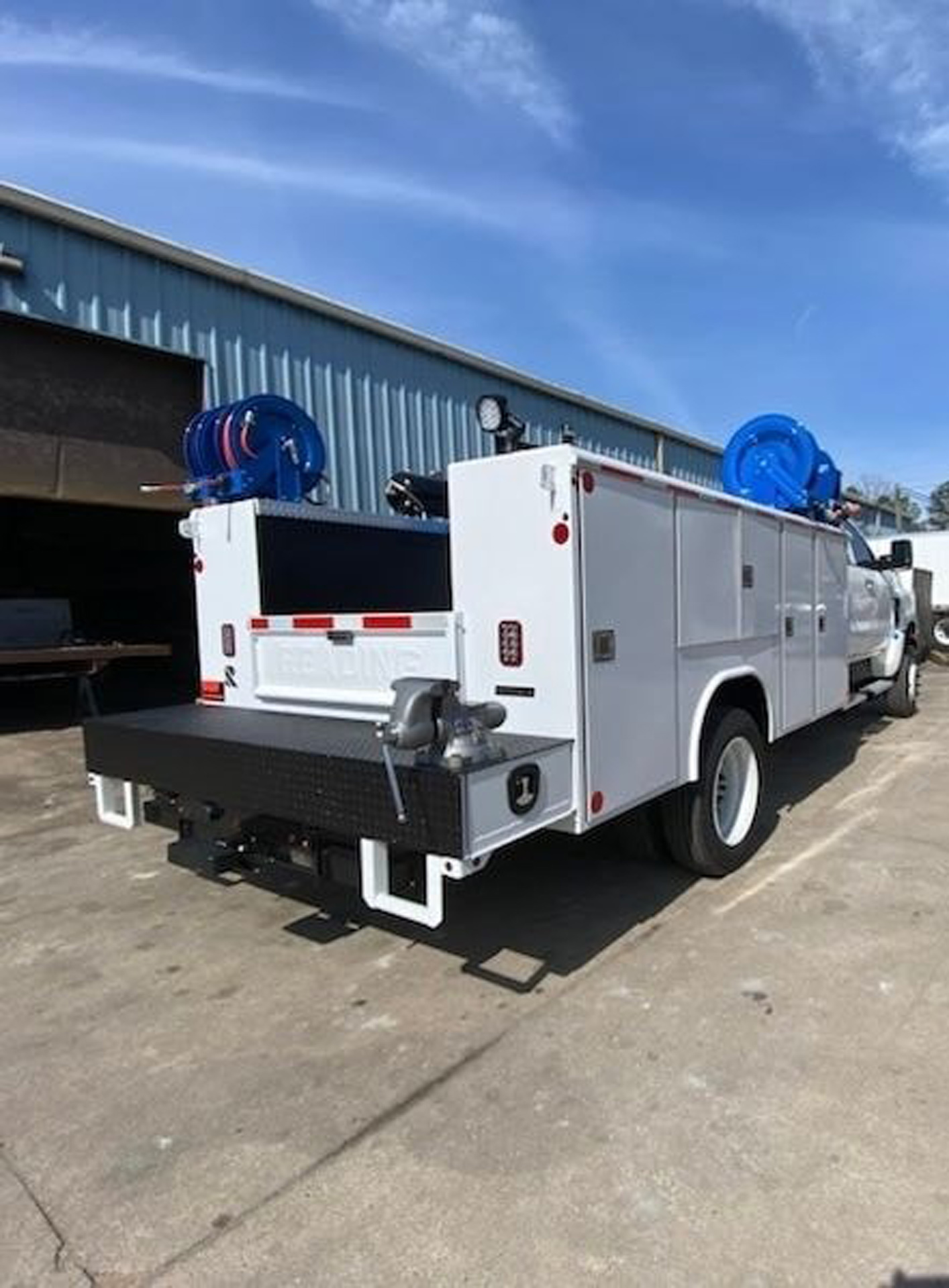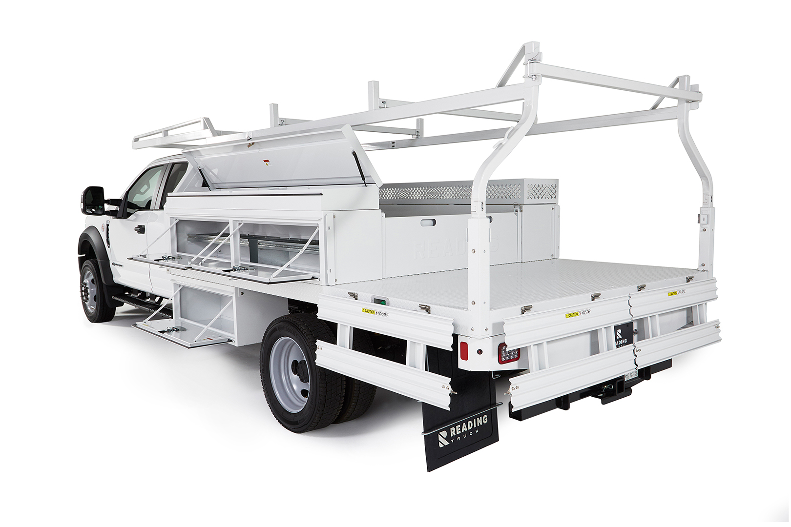 Vocations like mobile service, oil and gas industries and heavy construction sometimes need all the toughness of a crane body, without the crane. To serve these industries, Reading offers our traditional Mechanic Service Body. With features like workbench bumpers, 60″ tall compartments with drawer units, work lights, and air compressor and welders setup, the Reading Mechanic Service Body is the trusted way to build the ultimate mobile workshop.