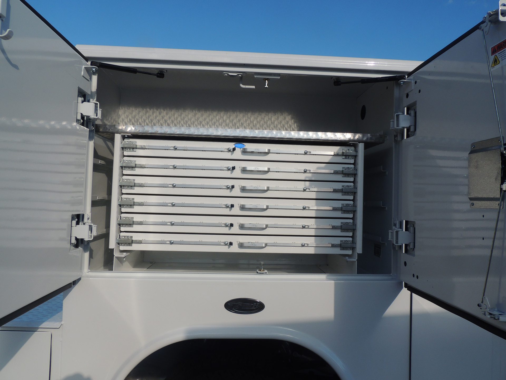 Our Aluminum Classic II service body offers weather-tight storage and customizable options with the lightweight advantages of all-aluminum construction. Aluminum resists corrosion, lets you increase available payload and much more. These bodies feature fully adjustable hidden hinges to deter break-ins. A Dual Pro seal system has unmatched weather protection with expanded door clearances. You get long-lasting toughness that saves fuel and money year after year.