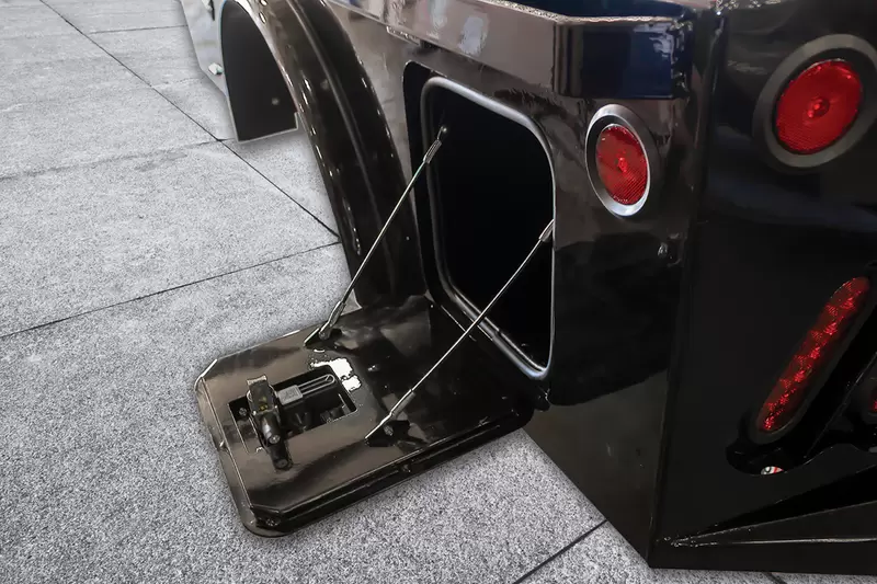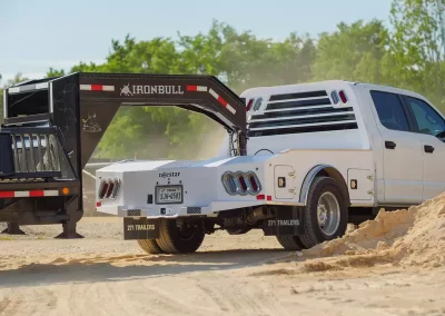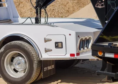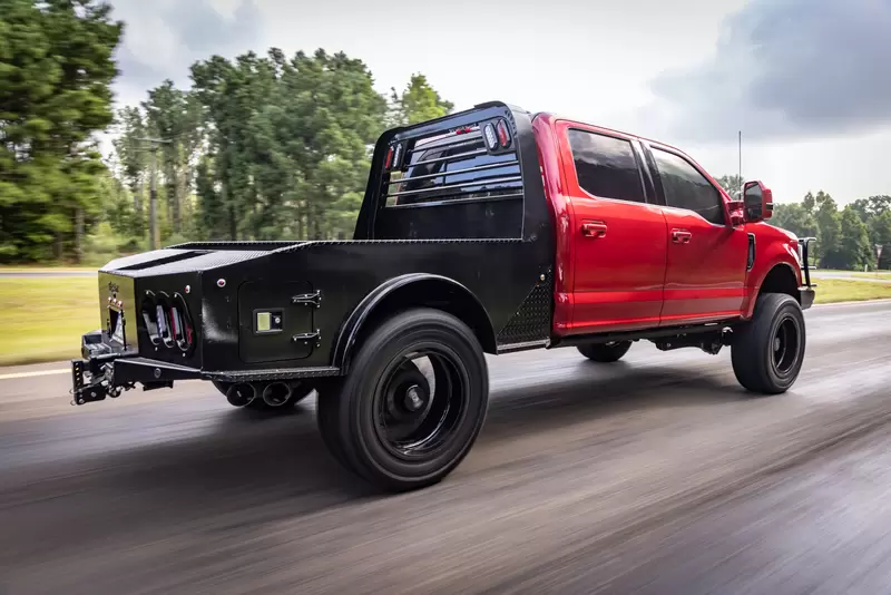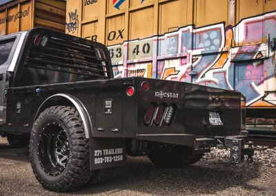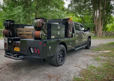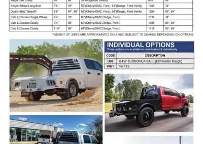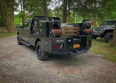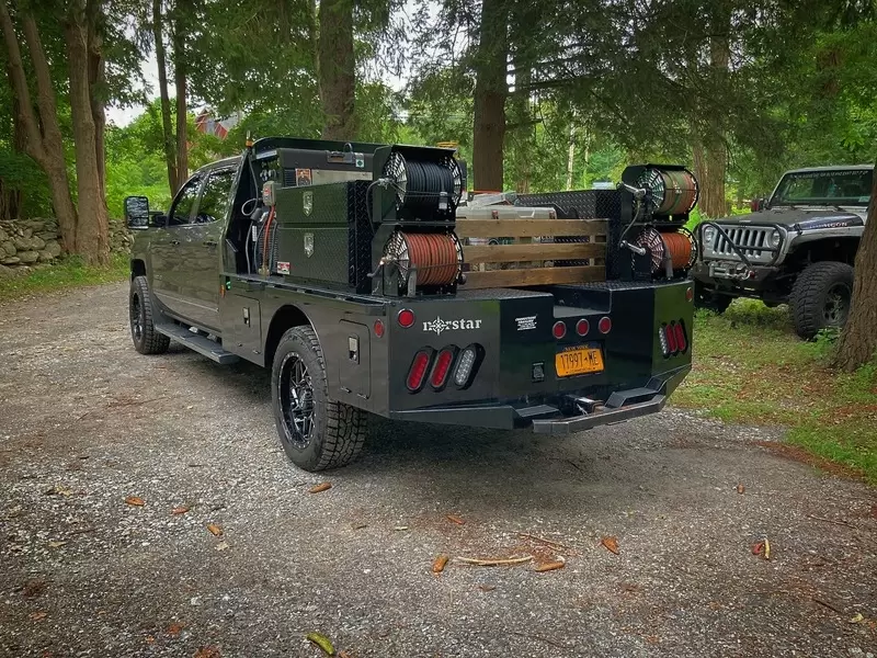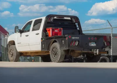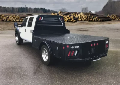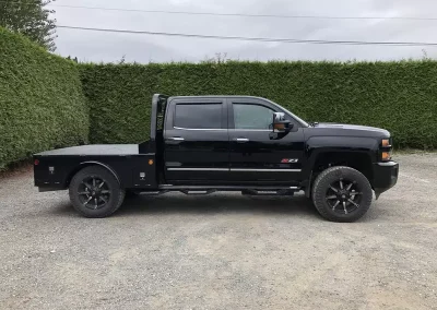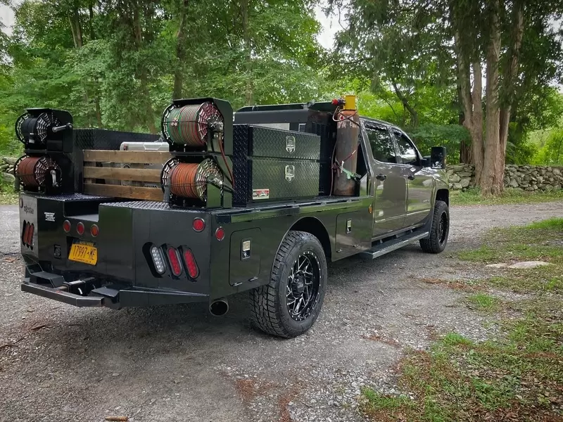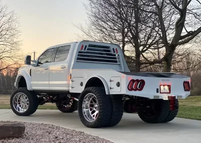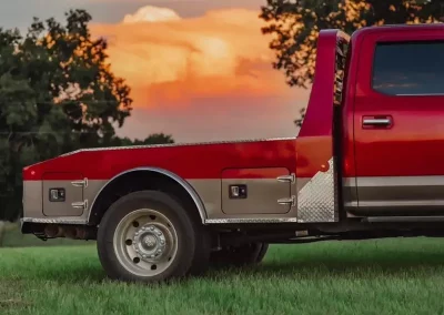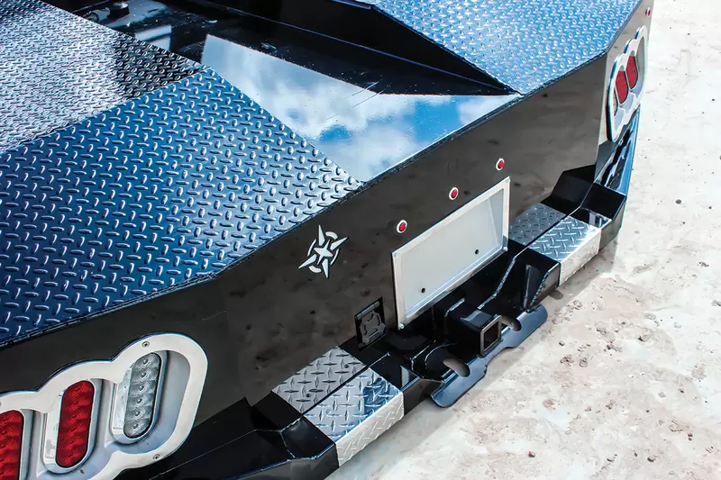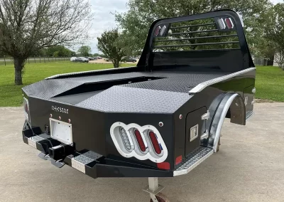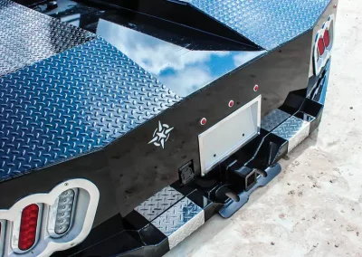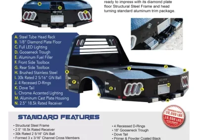 The standard 2.5” receiver allows you to add a hitch for bumper pull cargo and a 2 5/16” gooseneck ball is standard in case you are hauling a heavyweight. Our receivers are lab tested and certified for 18,500 lbs bumper capacity and 30,000 lbs gooseneck capacity. This bed is the perfect fit for any single or dual wheeled work truck and can keep up with your daily workload. The WH comes equipped and ready to impress loaded with 1/8” diamond plate floor and 10 gauge sides, with 11 gauge skirted bumper coated in gloss black powder coat. We have put just about every option on this bed except the kitchen sink – standard including cast housings on rear lighting, fuel filler, license plate mount, chrome accented head rack lighting, running boards and loads of diamond plate trim. Go to work – in style.