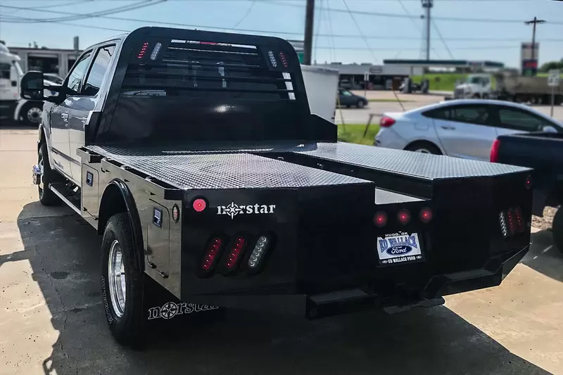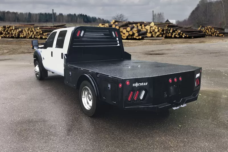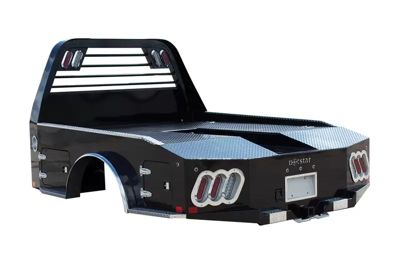 Need a working truck bed with a little extra built in storage? Our ST skirted truck bed might be just for you. This bed has many features, some of which include four locking boxes (standard) as well as 10 gauge sides, mated with the 11 gauge full skirted bumper. This bed is the perfect fit for any single or dual wheeled work truck and can keep up with your daily workload.